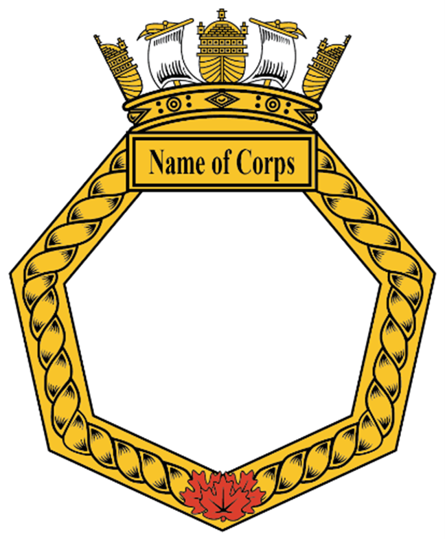 3. Bordure en corde – Normalement circulaire et dorée. Il existe des exceptions pour certains noms historiques de la RN, mais tout nouveau corps doit utiliser le cadre circulaire.